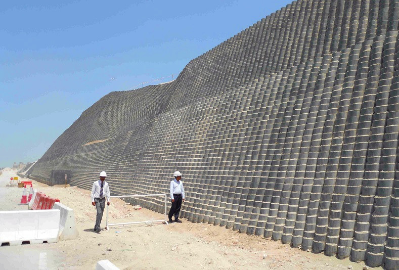 Earthmate WALLSTRAIN® HDPE Smooth Geocell is a light weight, flexible three-dimensional and expandable panels which are made from High Density Polyethylene (HDPE) strips. The High Density Polyethylene (HDPE) strips are ultrasonically bonded together to form an extremely strong configuration. It can be used for preventing horizontal movement of the filling materials and enhancing the material’s shear strength as well as bearing capacity significantly. The three-dimensional webs provide considerable weight distribution to support heavy stress without displacement.Vegetation could grow through the Geocell structure rather than other environmentally-harmful possibilities such as pavement or cantilever wall.