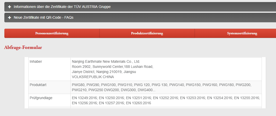 Earthmate BasalFab PP Woven Geotextiles have been awarded with CE Certificate of Conformity by TUV Austria.This CE Approval is for Construction Products Regulation 305/2011/EU, the CE Marking will be put on the packing label from this month.
